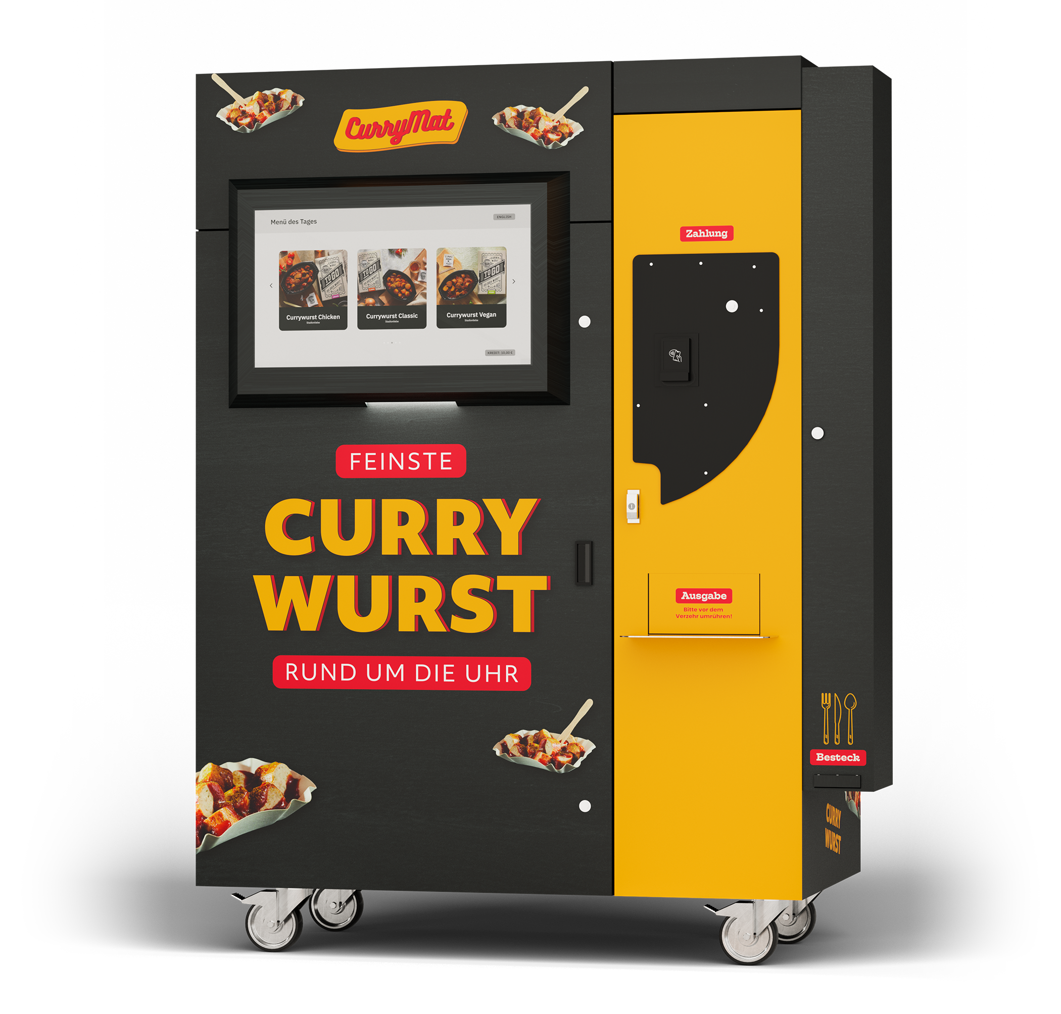 Mit dem CurryMat bringen Sie die Kultwurst aus dem Imbiss direkt an Ihre Kunden. Pikant-fruchtig, heiß serviert und rund um die Uhr verfügbar – ganz ohne Personal, dafür mit genialem Geschmack.